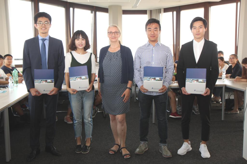 帕德博恩大学机械专业合作项目负责人Zimmer教授为他们颁发了奖学金证书。员工们表达了自己对英国上市公司365官网和帕德博恩大学的感谢之情,使得自己能够非常快的融入到德国的学习和生活中,并取得优异成绩。