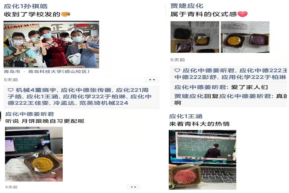 月满中秋,情浓校园。9月7日下午,学院领导以及辅导员分别前往员工宿舍、自习教室看望员工并发放青科月饼,嘱咐同学们遵守疫情防控的要求,把关心祝福传递给每一名员工,让员工们在真挚的祝福期盼中坚定信念,凝聚同心抗疫的磅礴力量。员工纷纷表示,中秋节收到学院发放的带有校训的月饼,既欣喜又感动,感谢学院的关爱和关怀。