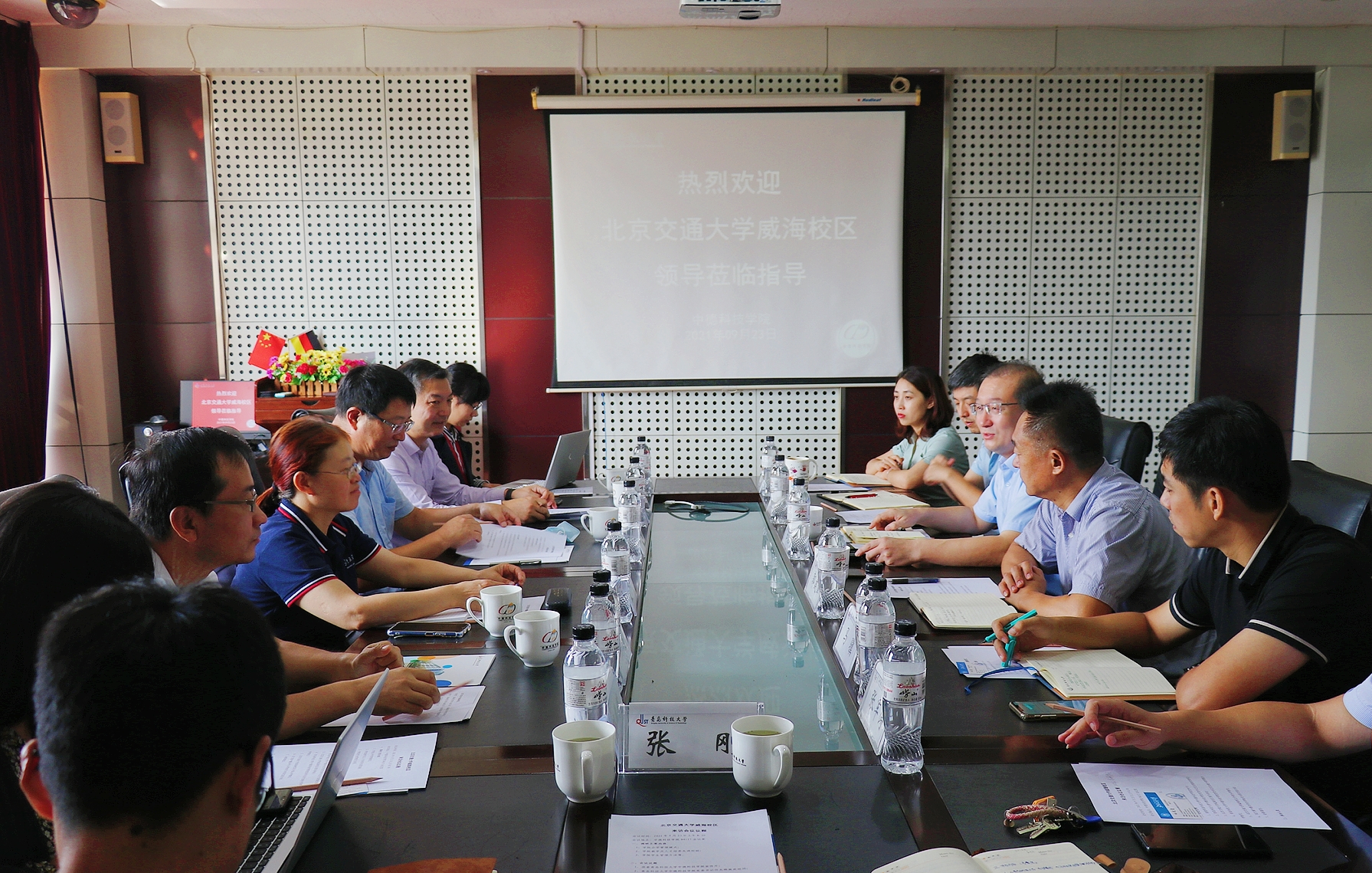 9月23日上午,北京交通大学威海校区管委会副主任,威海国际学院副经理白延雷、肖贵平,办公室主任刘广志、常务副主任卢茂楠、团委书记孙俊伟、外事主管潘悦、办公室教师张刚一行7人来到公司交流访问,公司党政领导班子、团委、办公室相关负责人参加会议,会议由党委书记任允晓主持。