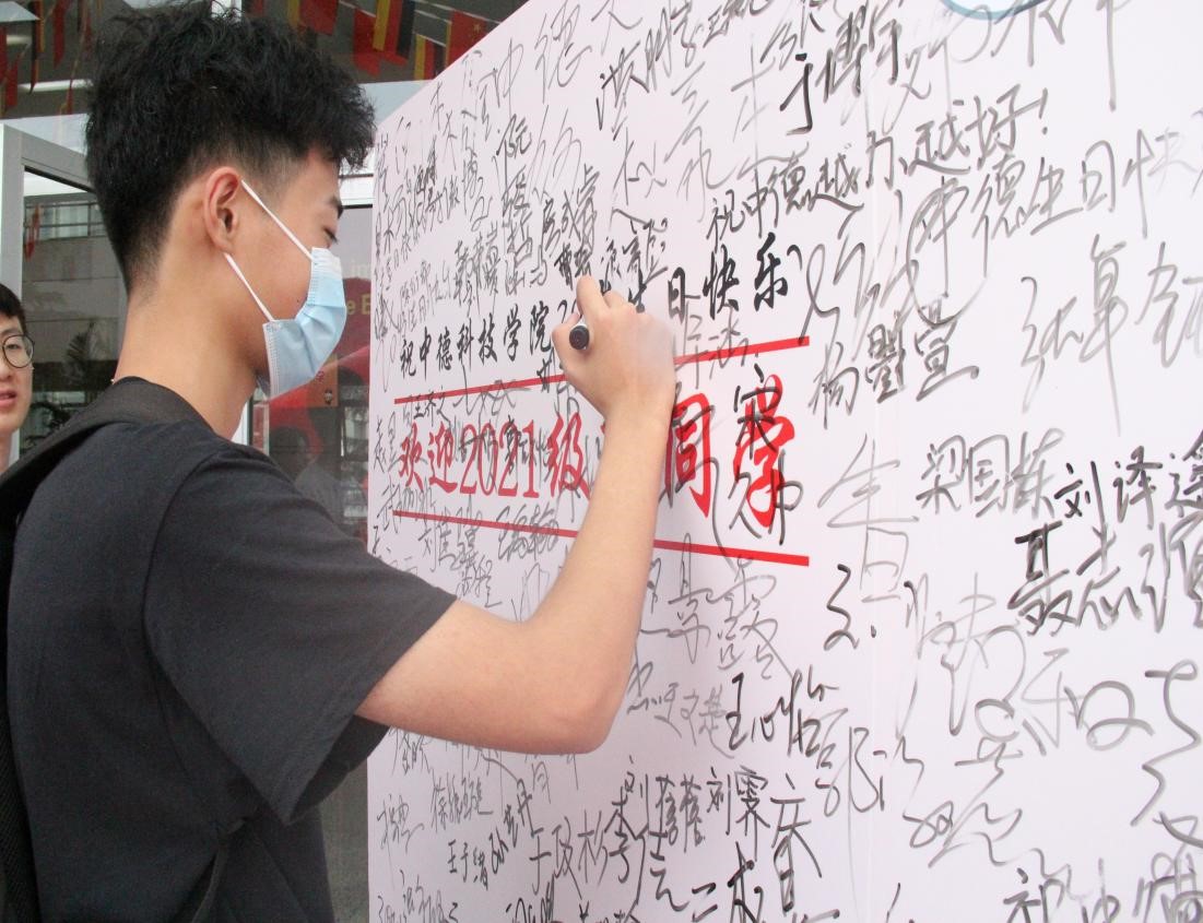 廿载芳华,初心筑梦。在即将迎来学院二十周年院庆之际,学院开展了“筑梦中德,扬帆起航”的主题活动,现场采访每位新生对学院二十周年院庆的祝福以及对即将开启老员工活的规划,同时在院庆签名墙签名,祝福学院中外合作办学再创辉煌,祝福学校培育更多人才,续写新的华章。