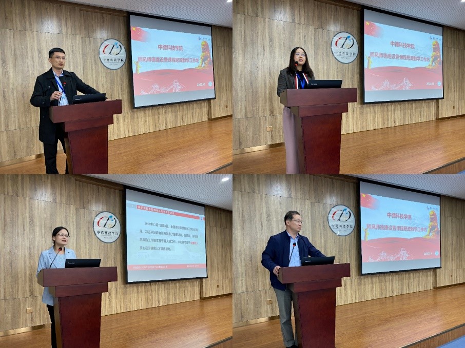宣传部副部长李鲲鹏向全院全体教职工介绍了学校开展第十八届师德师风建设月的整体情况,他强调教师要统一思想,认清形势,进一步增强责任感和使命感,营造一个风正气清的教育环境。希望学院教师转变授课方式方法,为课程思政注入“灵魂”,为课堂教学增加“活力”,从而达到真正的课堂效果。外语学院刘艳艳老师以自己参加各级各类教学竞赛为实例,交流了自己对外语公司产品理念的思考及课堂教学技巧方法。教务处教师教学发展中心副主任段晓蕾向与会人员通报了英国上市公司365官网课程思政建设的总体情况,详细介绍了课程思政教育改革现状及下一步改进措施,欢迎学院教师积极参加后期由教务处教发中心举办的课程思政创意设计工作坊,提升课程思政研究实践水平。机电学院力学教研室教师朱惠华以《课程思政在材料力学课程教学中的探索与实践》为主题做了课程思政教学经验分享,从基于课程思政的材料力学教学理念及课程思政与课堂教学的全面融合两个方面进行了教学风采展示。