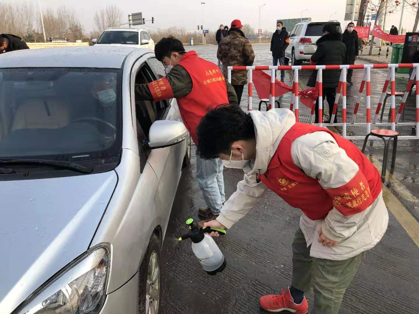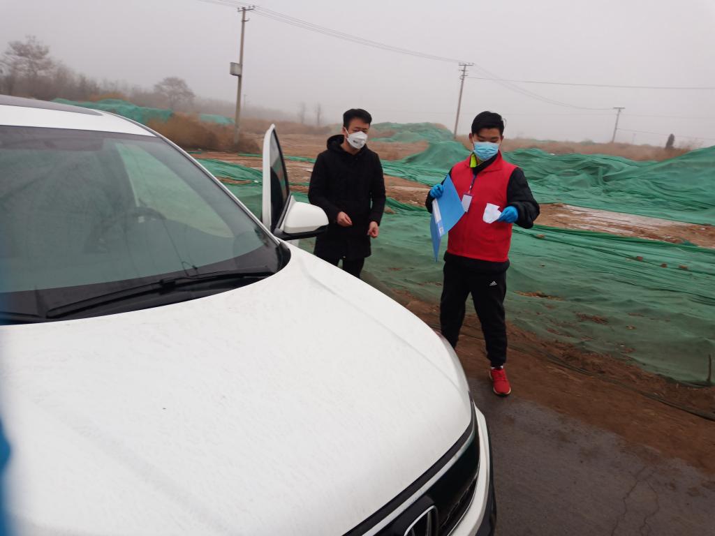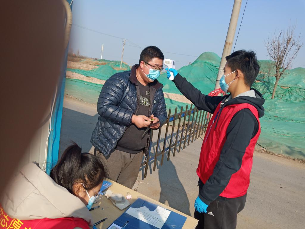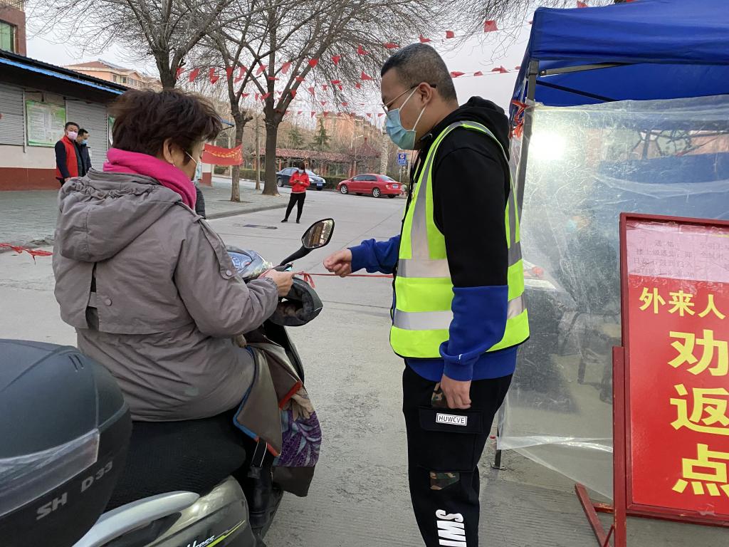 大屯三村村口“引导来往车辆到指定位置接受检查并登记,保持距离对进出人员进行提问测量,消毒……”,陆卓豪做好自身防护后开始了一天的忙碌。
