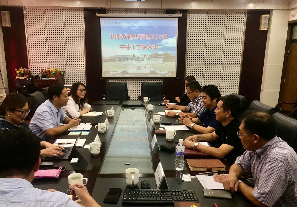9月19日上午,华东理工大学中德工学院经理曹宵鸣、副经理何希、教学管理部主任胡骅一行来院交流,学院经理李镇江、党总支书记王江忠,副经理刘中冬、党总支副书记王永波,学院办公室、教学部负责人参加了交流座谈会。