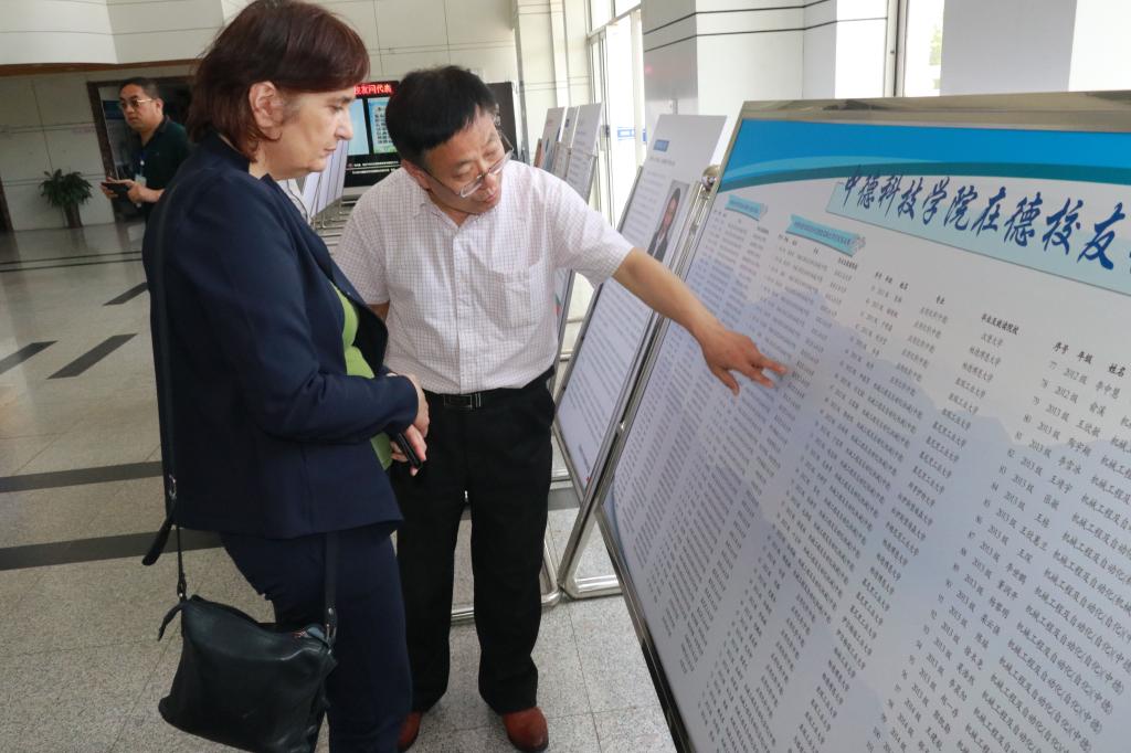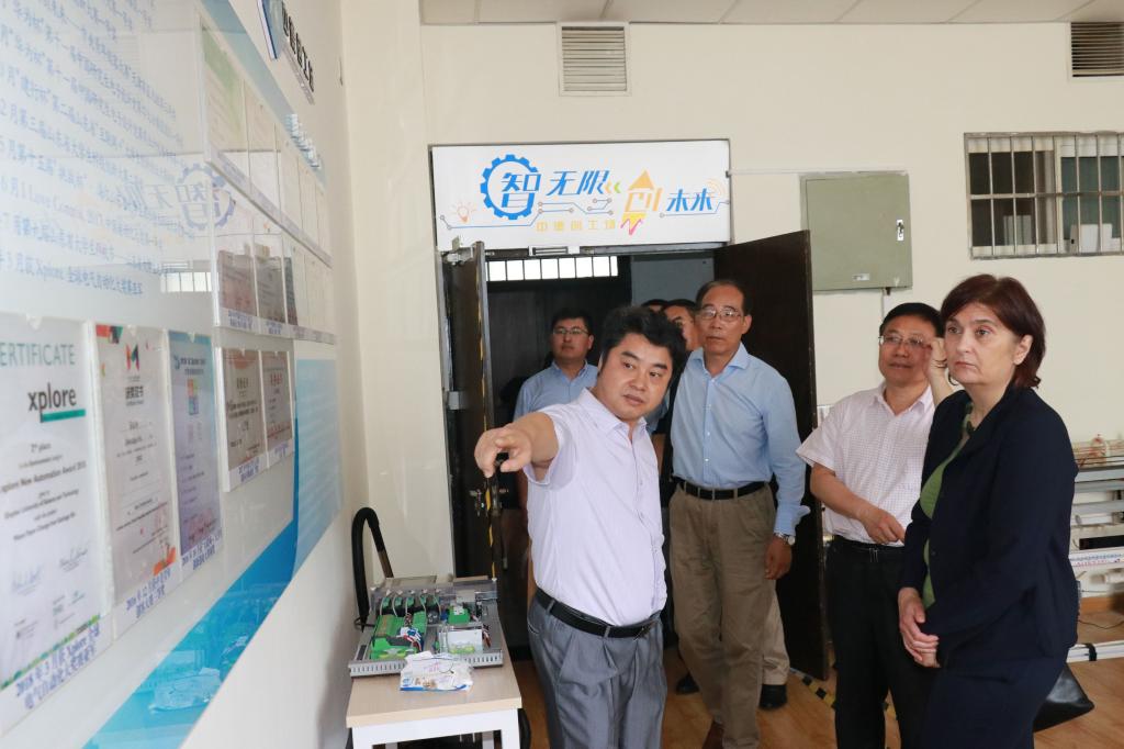 Heidi Cordier女士对中德合作办学项目发展所取得的成就给予了高度评价,参观了学院“语言培训与考试中心”办公场地以及院德语教学教室、实验室、创客空间——中德创工场,详细了解了员工德语学习和科技创新开展情况。