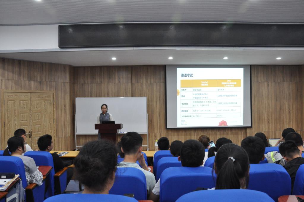 DAAD梁好讲解了德国综合类大学和应用科学大学的区别,中国职工在德国学习的专业,中国职工在德国联邦州的分布,并介绍了在德国的基本生活费用,强调了赴德国留学的必要条件是APS加上语言考试,APS是验证员工提交材料的真实性,语言考试包括德福、DSH、雅思和托福等。