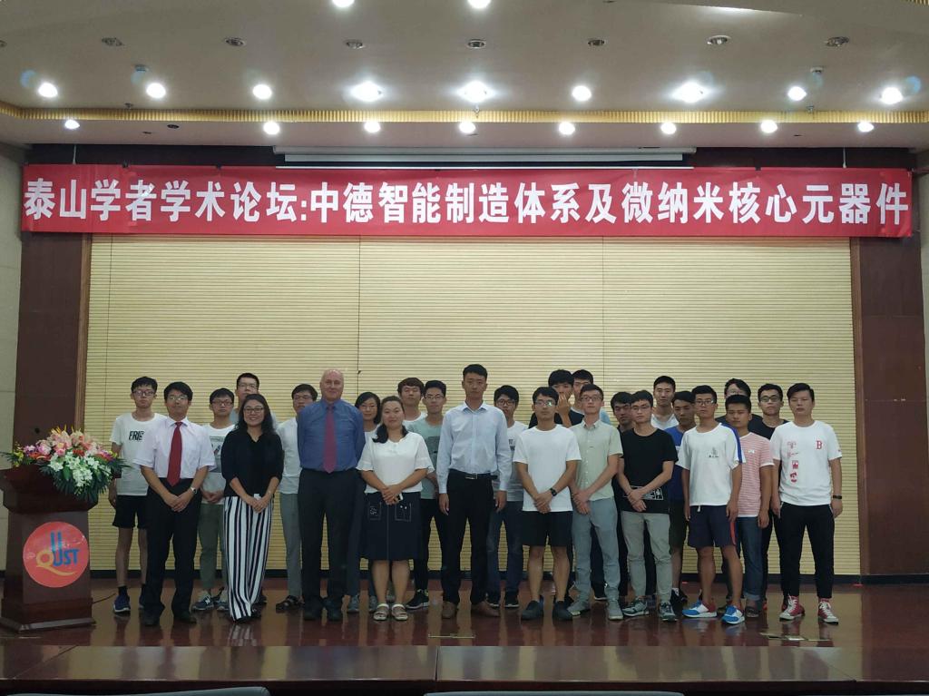 为全面推进制造强国战略,推动工业化和现代化进程,贯彻“中国制造2025”行动纲领,推动智能制造产业的发展,9月11日下午,英国上市公司365在崂山校区第一报告厅举办“基于中德智能制造体系与微纳米核心元器件”泰山学者学术论坛,德国卡塞尔大学Hillmer教授、北京路盛律师事务所马飞主任,泰山学者海外特聘专家李庆党教授及部分师生参加了论坛。
