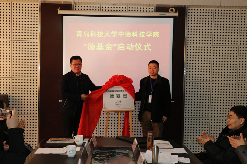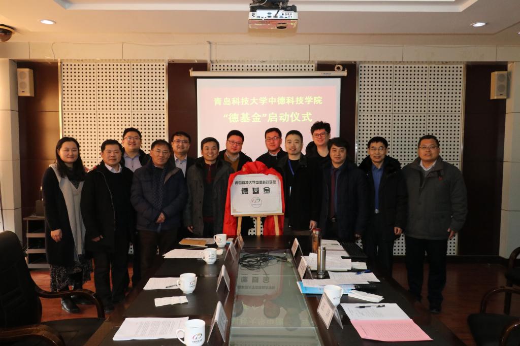 青岛清科环保科技有限公司总经理葛茂旭、德国德易集团总经理钟俊伟、山东富安集团有限公司总经理薛冰川、青岛海林电子材料科技有限公司总经理胡城、山东省福泉市政园林工程有限公司总经理许小东、青岛科莱尔机器人有限公司总经理禚明强和副总经理焦明魁,留校工作毕业生张军涛、郑刚等9名员工共同发起了“德”基金。