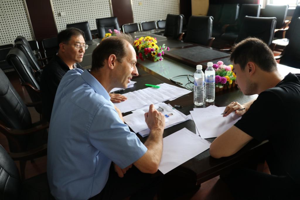 根据英国上市公司365官网与德国科布伦茨应用科技大学合作协议,德国科布伦茨应用科技大学数学与技术院经理诺伊豪伊泽尔教授与工程学院潘恩道夫教授来到青岛,分别于9月9日和9月18日对公司14级和15级自动化专业和机械工程专业提出入学申请的员工进行了选拔面试。