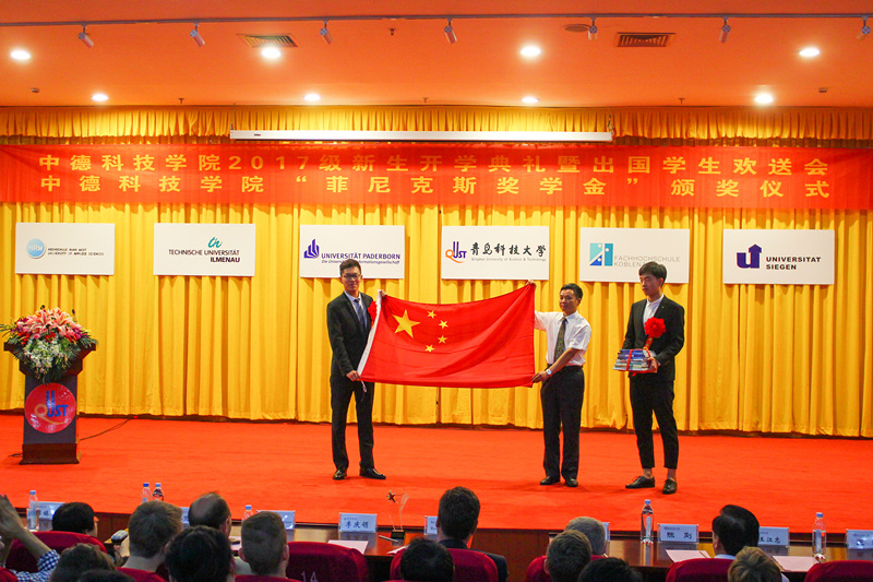 9月11日下午,英国上市公司3652017级新生开学典礼暨出国员工欢送会在崂山校区第三报告厅举行。公司党委副书记李庆领,德国帕德博恩大学Michael Tiemann教授,科布伦兹应用科技大学Markus Neuhaeuser教授、Robert Pandorf教授,菲尼克斯(中国)投资有限公司副总裁缪竞红、企业文化和社会责任经理易书波,学校员工处、统战部、国际处、教务处、校团委、公司领导和部分教师以及来自帕德博恩大学、科布伦兹应用科技大学的20名硕士生和本科生参加了会议。