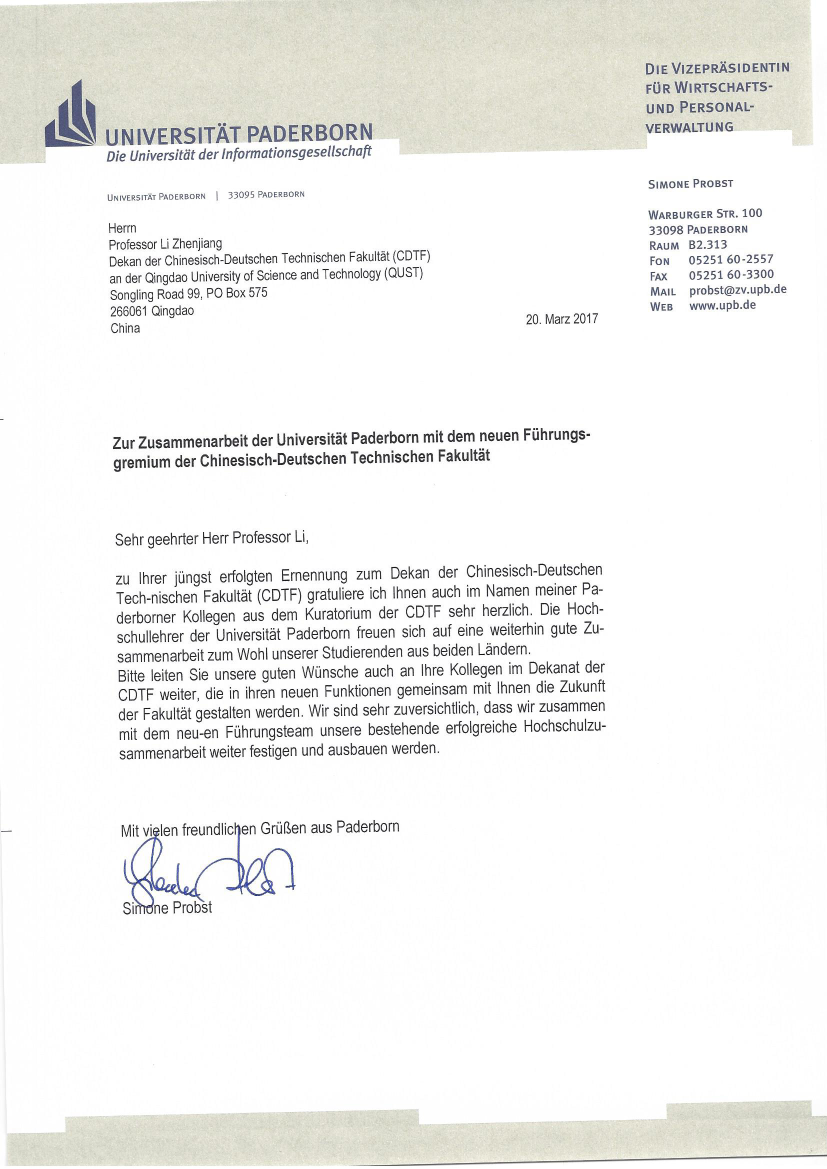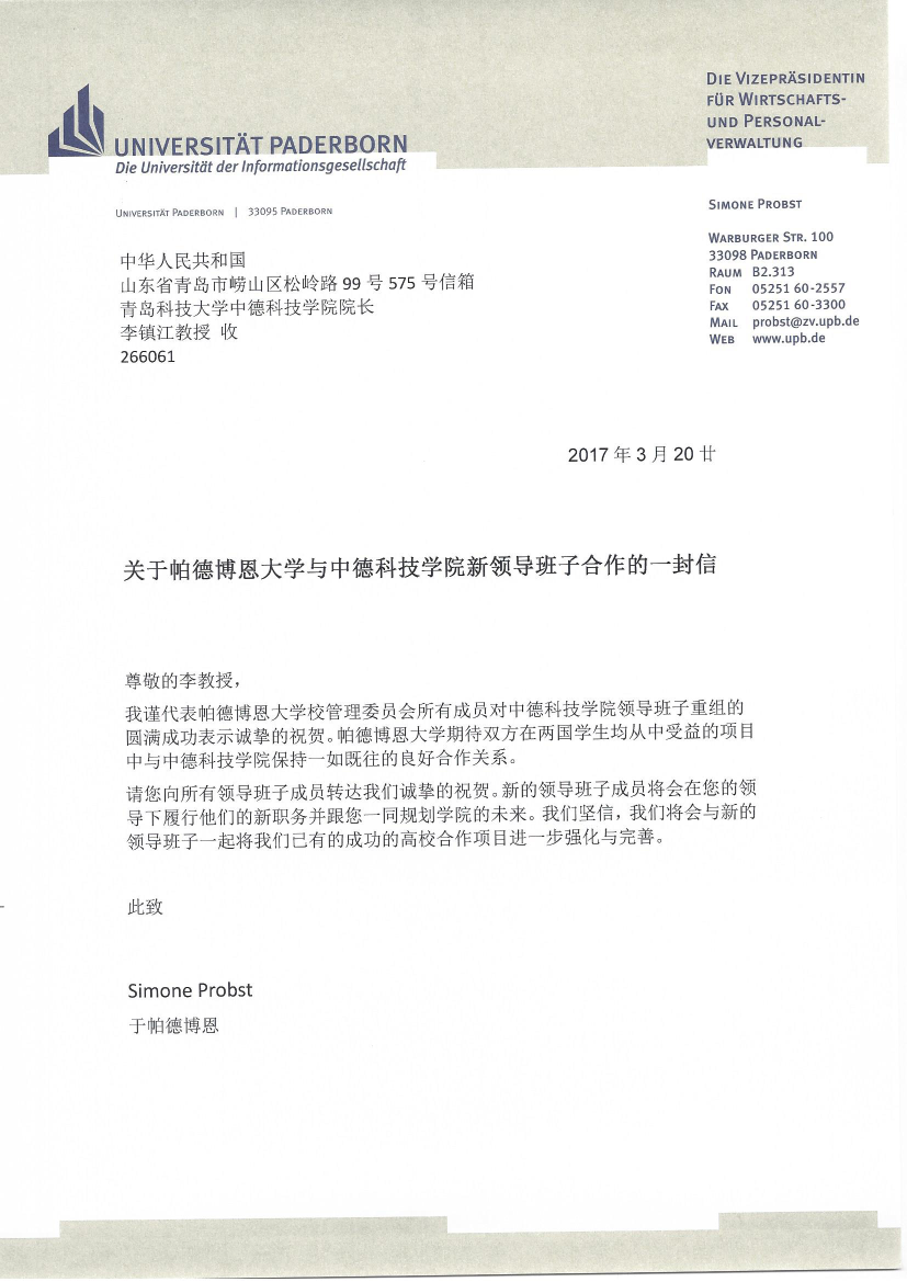 随着公司新一届领导班子换届完成,德国合作伙伴院校纷纷发来贺信,对新一届领导班子表示衷心祝贺,并表达了与公司在教学与科研方面继续加强并拓展合作的愿望。