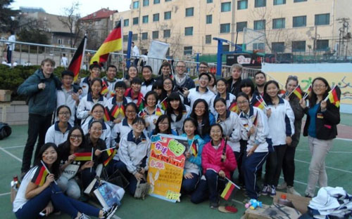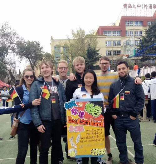 近日,中德学院8名德国职工应邀赴青岛九中,参加该中学举办的国际风情周活动。该校各个班级随机选择一个国家,在国际风情周期间,展示所代表国家的风俗文化。中德学院的职工,加入了其中代表德国的班级,在该校掀起了一个德国风情小高潮。通过参加这项活动,德国职工亲自了解体验了国内中学的状况,增长了见识,同时也展示了中德学院在国际化人才培养交流方面的风采。