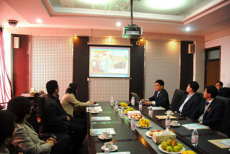 经理王守城、党总支书记郭曰铎对郑思洁部长一行的到来表示热烈的欢迎并介绍了中德学院的基本情况。分团委书记李春家向考察组做了题为《探索中外合作办学形势下共青团工作新机制,培养青年员工跨文化交流能力》的国际化团建工作汇报。在听取了情况介绍和工作汇报后,考察组仔细查看了公司国际化团建工作的工作资料。围绕如何在国际化办学形势下开展共青团工作这一主题,考察组各位成员同学院领导、老师进行了深入交流。