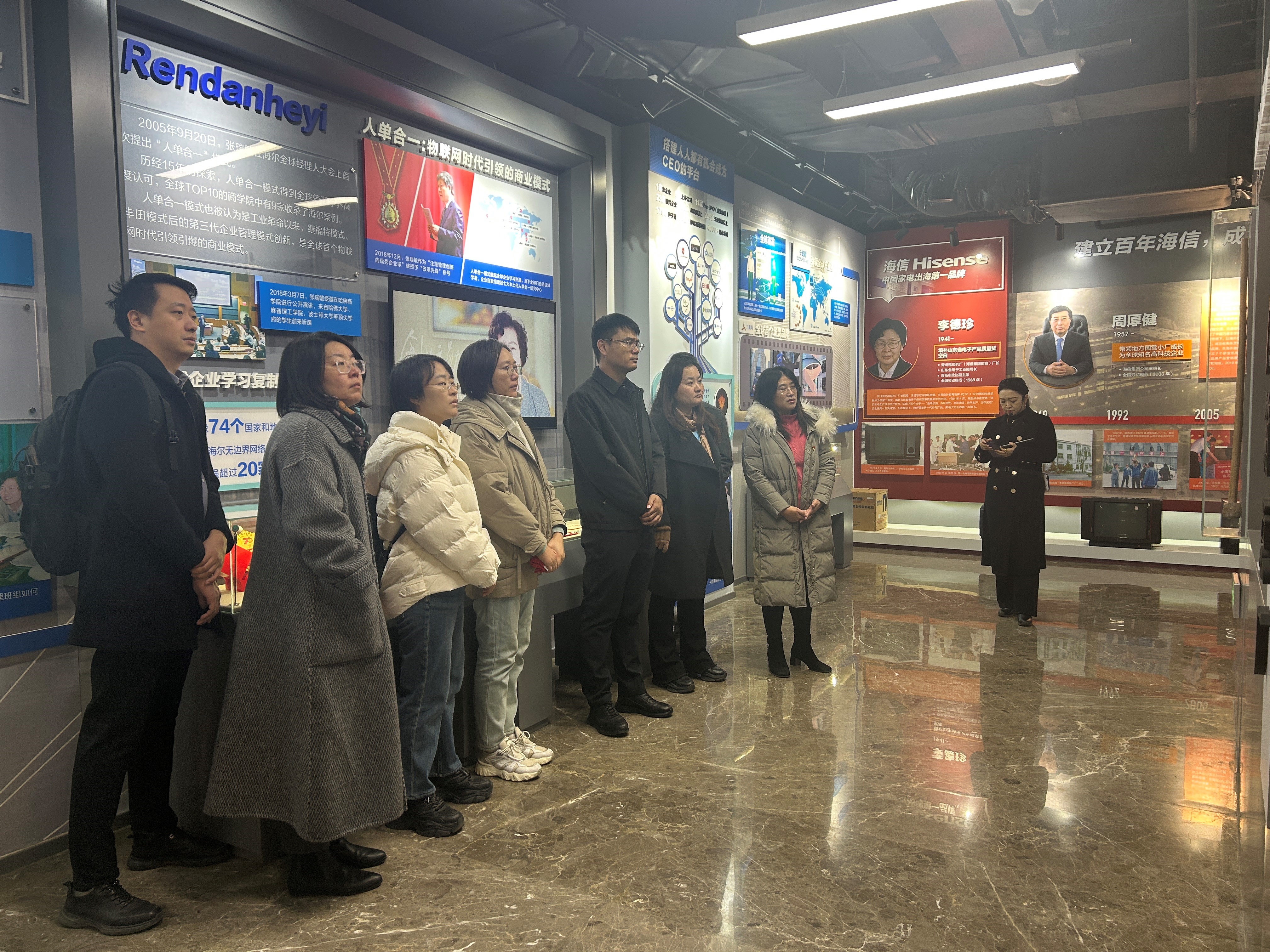 在展示馆内,党员们在讲解员的引导下,依次参观了各个展厅。丰富的历史资料、生动的劳模事迹以及珍贵的实物展品,全方位、多角度地展现了不同历史时期青岛市劳模工匠们的卓越贡献和奋斗历程,他们的故事感染着每一位参观者。