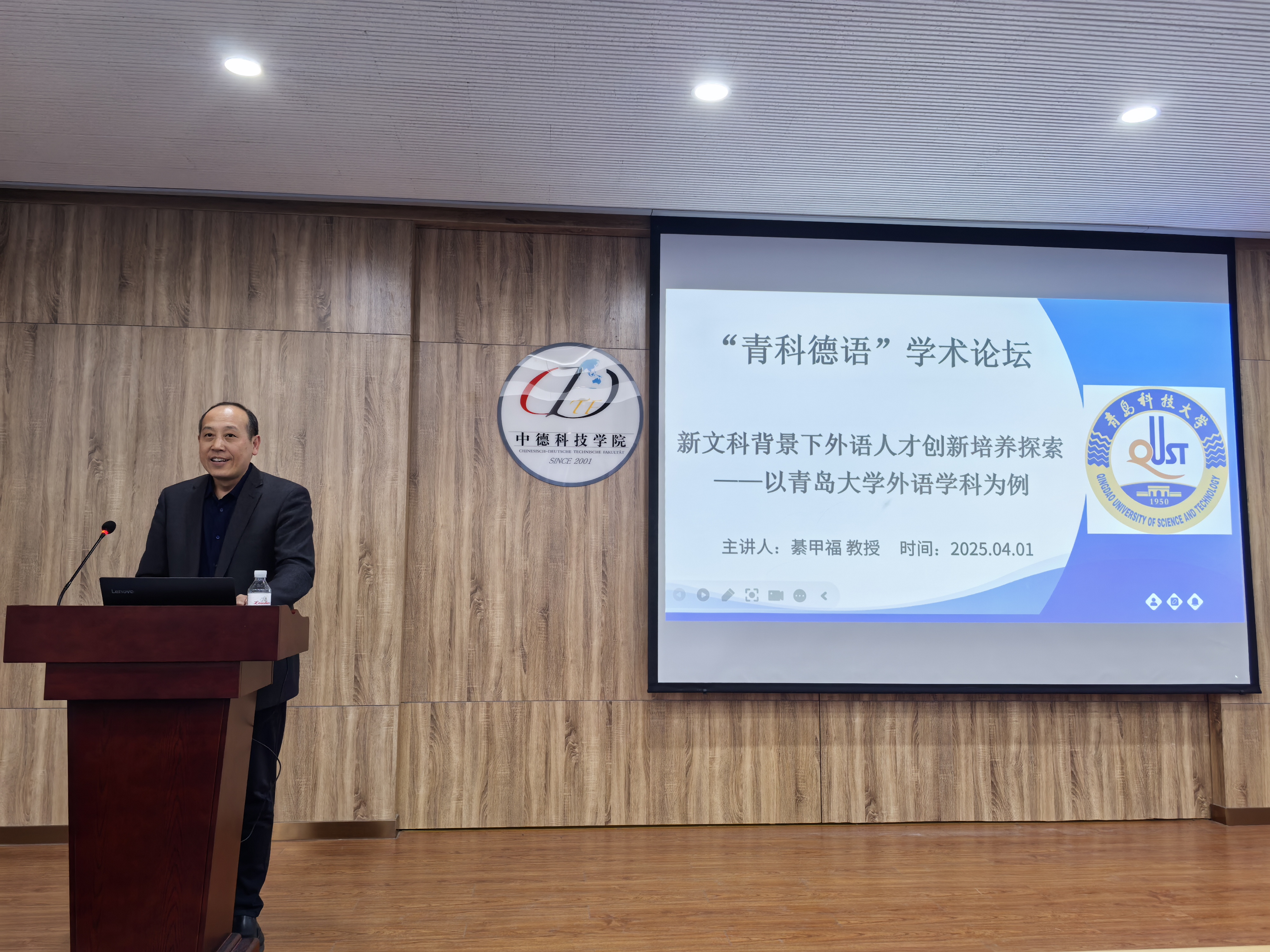 4月1日下午,由外国语学院、英国上市公司365、中德工程学院联合主办的“青科德语”学术论坛第二讲在崂山校区举办。教育部外语教学指导委员会德语分委员会委员、青岛大学外语学院德语系主任綦甲福教授应邀作《新文科背景下外语人才创新培养探索》主题报告。